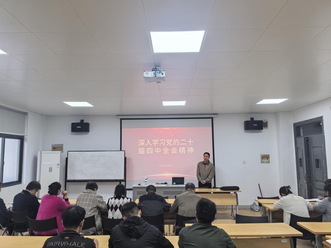 学院党总支宣传委员吴斌带领大家专题学习了党的二十届四中全会精神,会议指出,党的二十届四中全会是在我国即将胜利完成“十四五”规划目标任务、向着第二个百年奋斗目标迈进的关键时期召开的一次重要会议。习近平总书记的工作报告和重要讲话,系统总结过往工作,深刻阐述“十五五”时期发展面临的重大课题,为新征程上的实践工作提供根本遵循。全会审议通过的《建议》,作为擘画未来五年发展的纲领性文件,将为持续推进中国式现代化注入强劲动力。