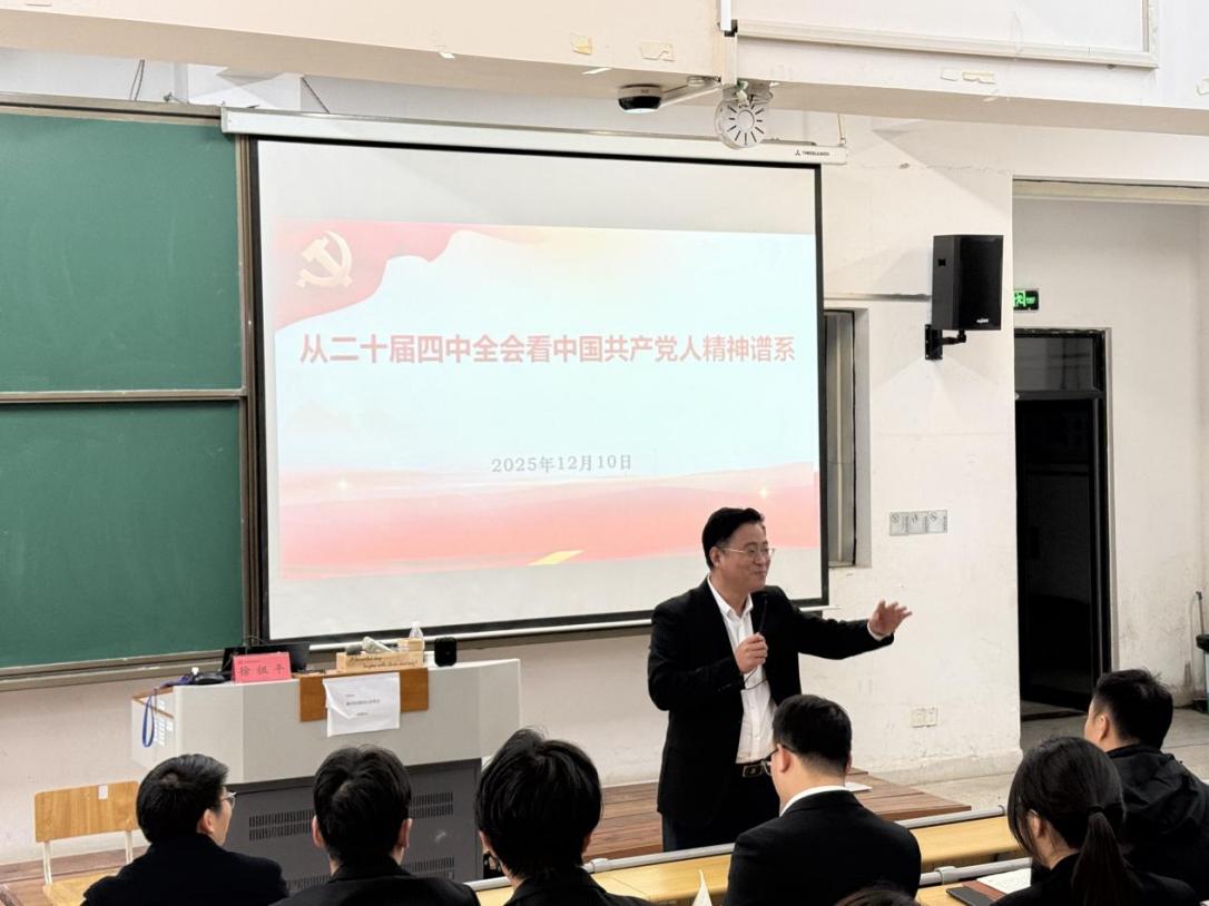 12月10日,常州市委宣讲团成员、校党委委员、统战部部长徐祖平走进土木工程学院,以“从党的二十届四中全会看中国共产党人精神谱系”为主题,为学院广大师生讲授思政课。