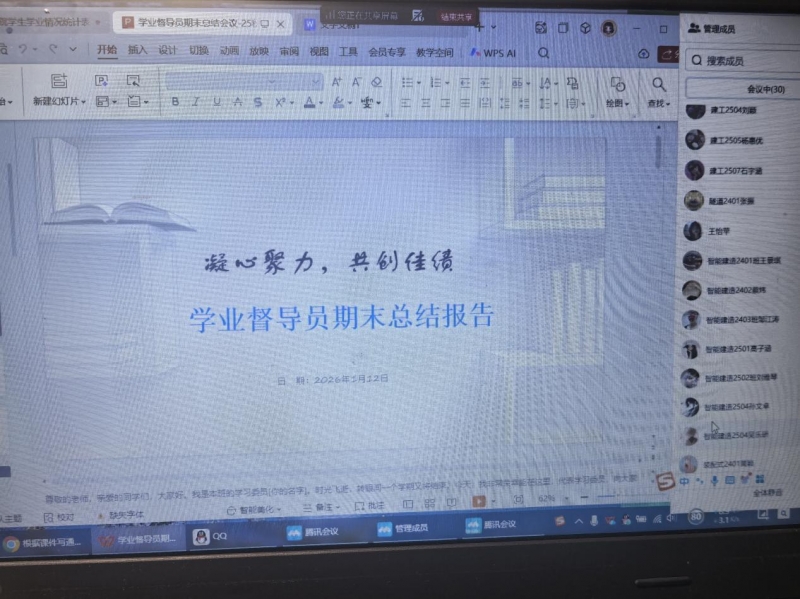 此次期末总结会议既是对过去一学期工作的全面回顾,也是开启新学期工作的全新起点。学业督导员表示,将以此次会议为契机,总结经验、改进不足,以更加饱满的热情投入到今后的工作中。相信在各个班级学业督导员的引领和全体同学的共同努力下,班级将凝聚更强合力,在学业发展道路上砥砺奋进,共创更加辉煌的成绩!